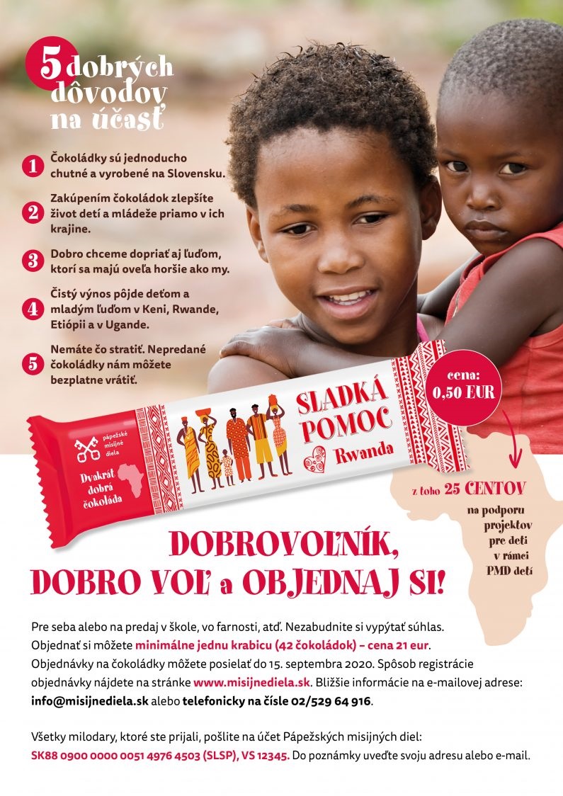 Na misijnú nedeľu – 18. októbra budete môcť prispieť na misijnú zbierku do pokladničky v kostole a zakúpiť si čokoládky pre misie počas celého týždňa. Katechézy pre prvoprijímajúcich sa zatiaľ odkladajú. Chorých na spoveď (aj pred prvým piatkom) prosím nahlásiť individuálne.